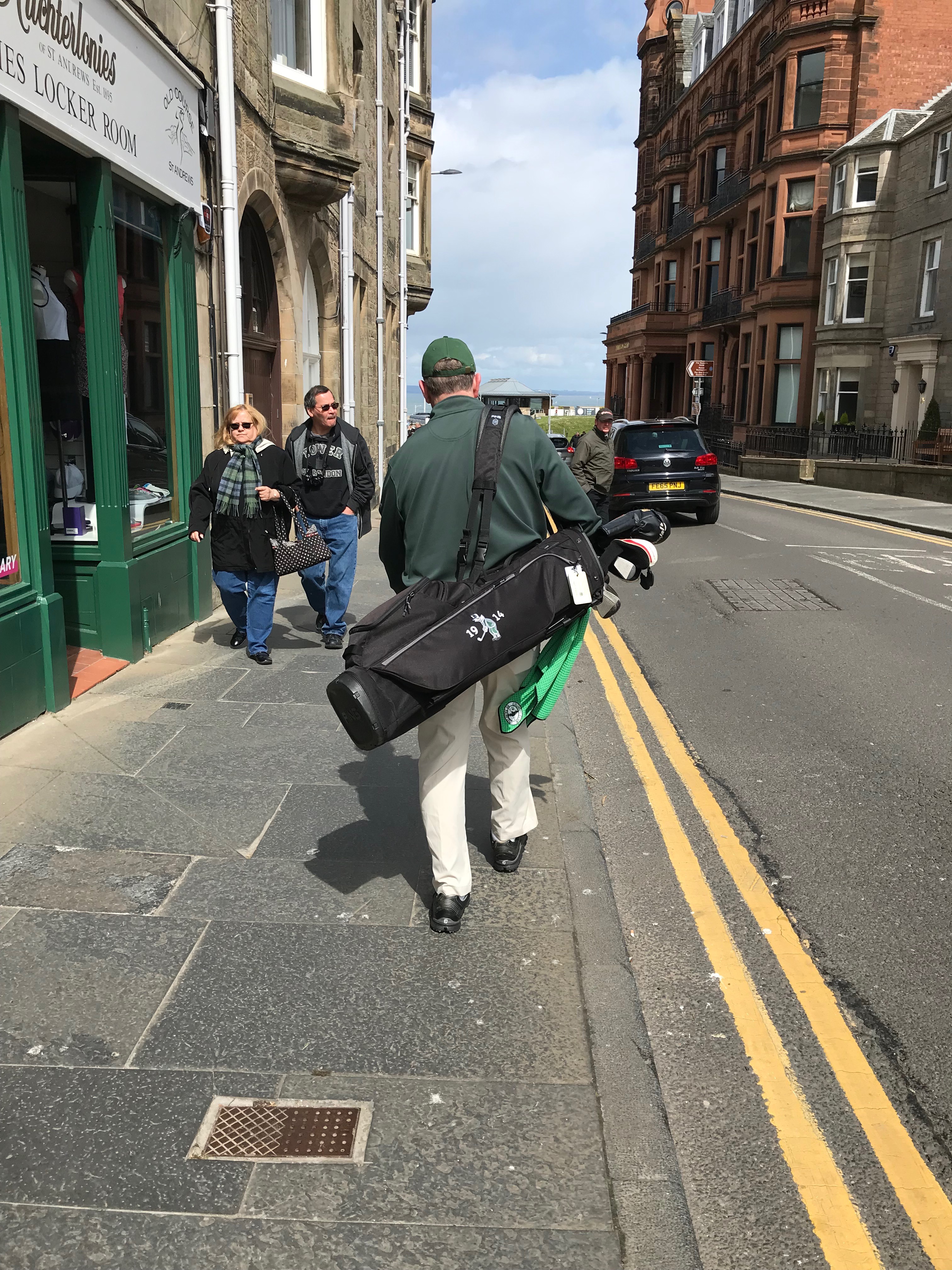 Enjoying the 5 minute walk from the Dunvegan Hotel to the first tee of the Old. One of the best commutes in golf.